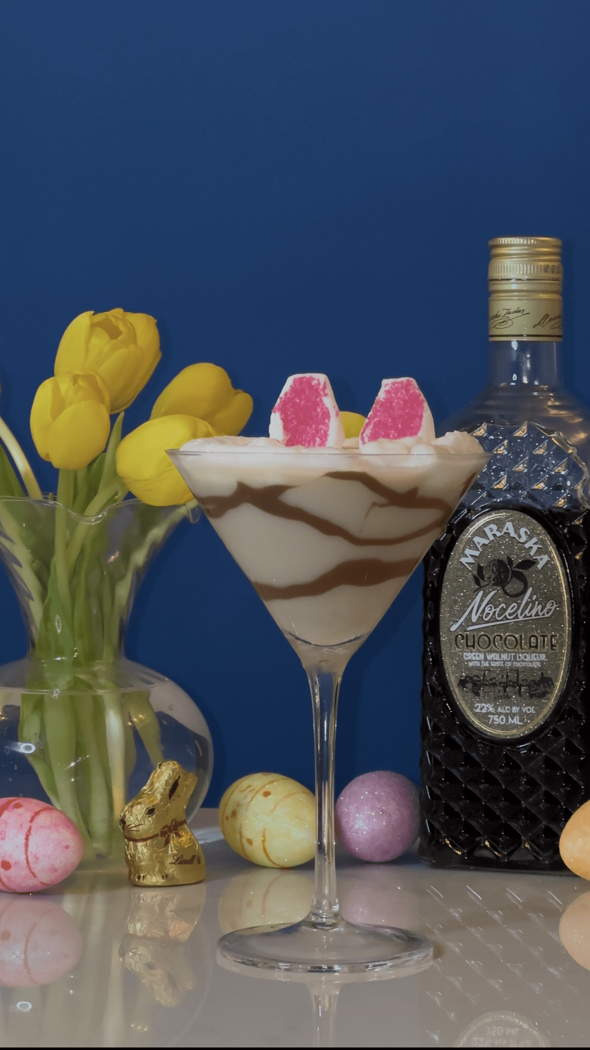 Happy Easter, friends! Here’s a fun and festive cocktail for Easter-The Blitzed Bunny- and did I happen to mention it’s a Fun Craft Cocktails original? This rich and decadent dessert cocktail is the creme de la yum of Easter cocktails. It features vanilla vodka, chocolate liqueur, coconut rum and half and half for an eggstra special treat. I’ve teamed up with Maraska who makes amazing liqueurs. Their Nocelino Chocolate Green Walnut Liqueur blends the rich earthy essence of green walnuts and decadent sweetness of natural chocolate. Produced in Zadar, Croatia with time honored traditions, this high-quality liqueur contains no artificial ingredients. Cheers!